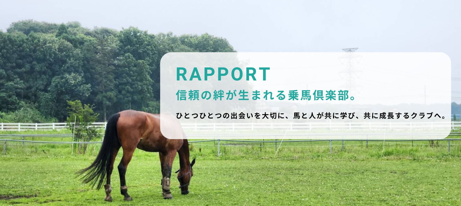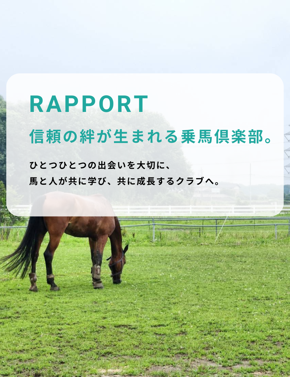 乗馬倶楽部ラポールは、馬と人が信頼を築き合うことで、心も身体も健やかに過ごせる時間を提供しています。